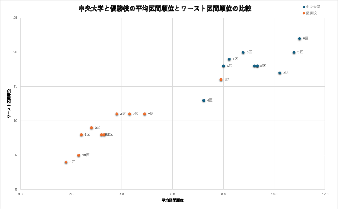 平均区間順位とワースト区間順位が示す「中央大学の特徴」