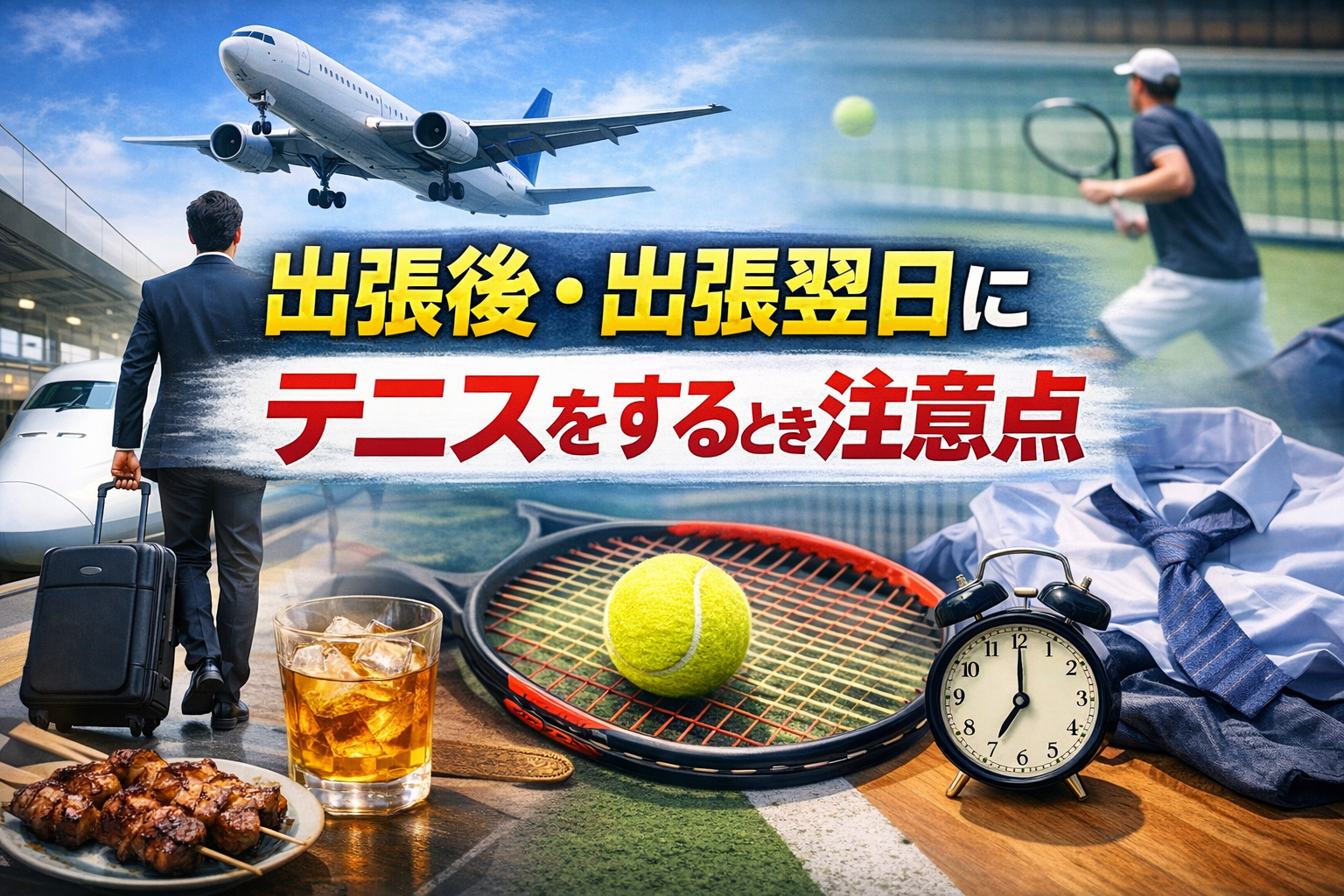 この記事では、出張後・出張翌日にテニスをする際に注意すべきポイントを、実体験ベースで整理していきます。