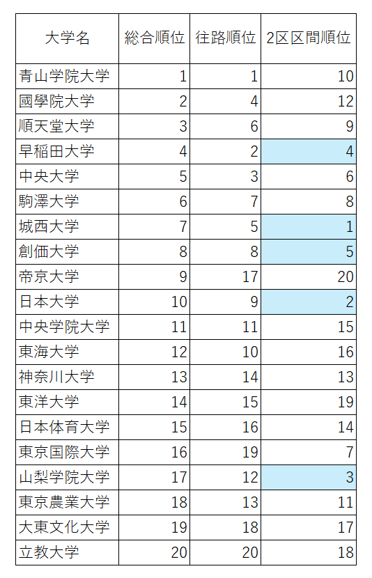 エース区間2区の重要性は結果に反映されたのか