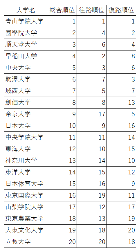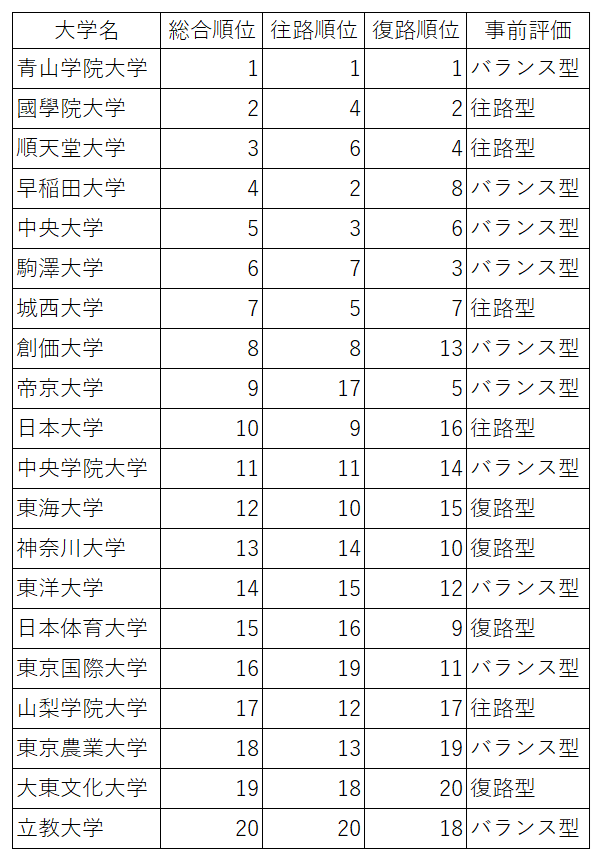 復路型の大学は、復路での巻き返しにより順位を上げるケースも見られた